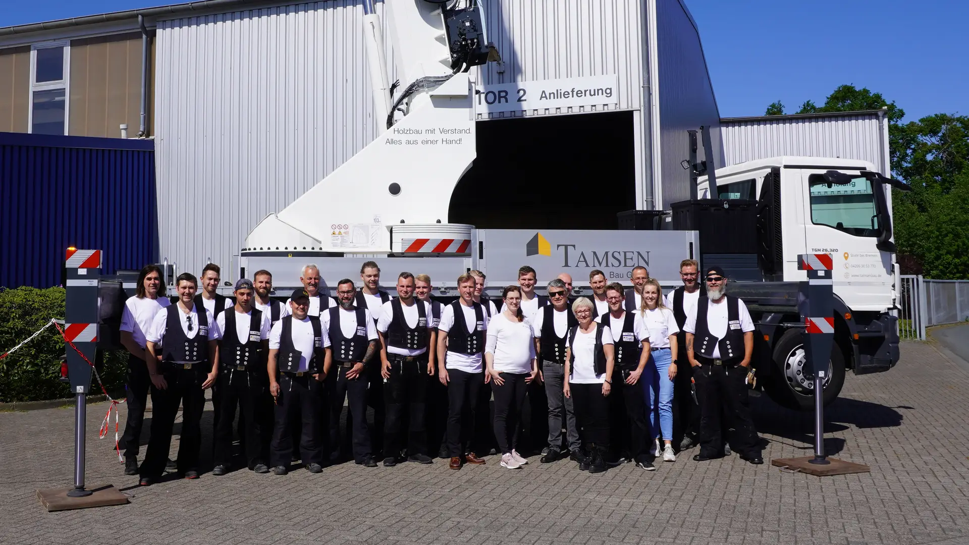 Das bei Bremen ansässige Familienunternehmen wurde am 1. Juli 1989 unter dem Namen »Tamsen und Rasch GbR« gegründet und erhielt erst 2015 ihren heutigen Namen »Tamsen Bau GmbH«. Die Expertise des Unternehmens liegt im Holzbau. Dabei ist egal, ob es um Carports, Dächer oder ganze Häuser geht. Von Neubau über Anbau bis zur Aufstockung übernimmt die Firma Bauaufträge und muss diese natürlich auch dokumentieren. Das alles übernehmen derzeit 28 Mitarbeiterinnen und Mitarbeiter sowie Auszubildende in ihrer täglichen Arbeit.